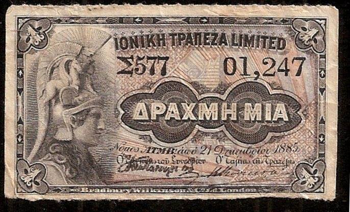 • Το 1885 συνέχιζε να είναι σε ισχύ η «αναστολή εξαργυρώσεως» και η «αναγκαστική κυκλοφορία» των γραμματίων των τριών Τραπεζών (Εθνικής, Ιονικής και Ηπειροθεσσαλίας). Αυτό σημαίνει ότι οι χάρτινες Δραχμές ονομαστικής αξίας 1 & 2 Δραχμών ΔΕΝ μπορούσαν ν’ ανταλλαγούν με αντίστοιχη ποσότητα ασημιού. Εκτός του ότι οι χάρτινες Δραχμές ΔΕΝ εξαργυρώνονταν κυκλοφορούσαν υποχρεωτικά με την ονομαστική τους αξία επειδή έτσι το έλεγε ο νόμος εφ’ όσον ΔΕΝ καλύπτεται από κάποιας αναλογία ποσότητα ασημιού ή χρυσού («αναγκαστική κυκλοφορία»). Ακόμη όμως κι έτσι ΔΕΝ μπορεί να κυκλοφορεί όσο χρήμα θα επιθυμούσε μια κυβέρνηση (άρθρο 1).