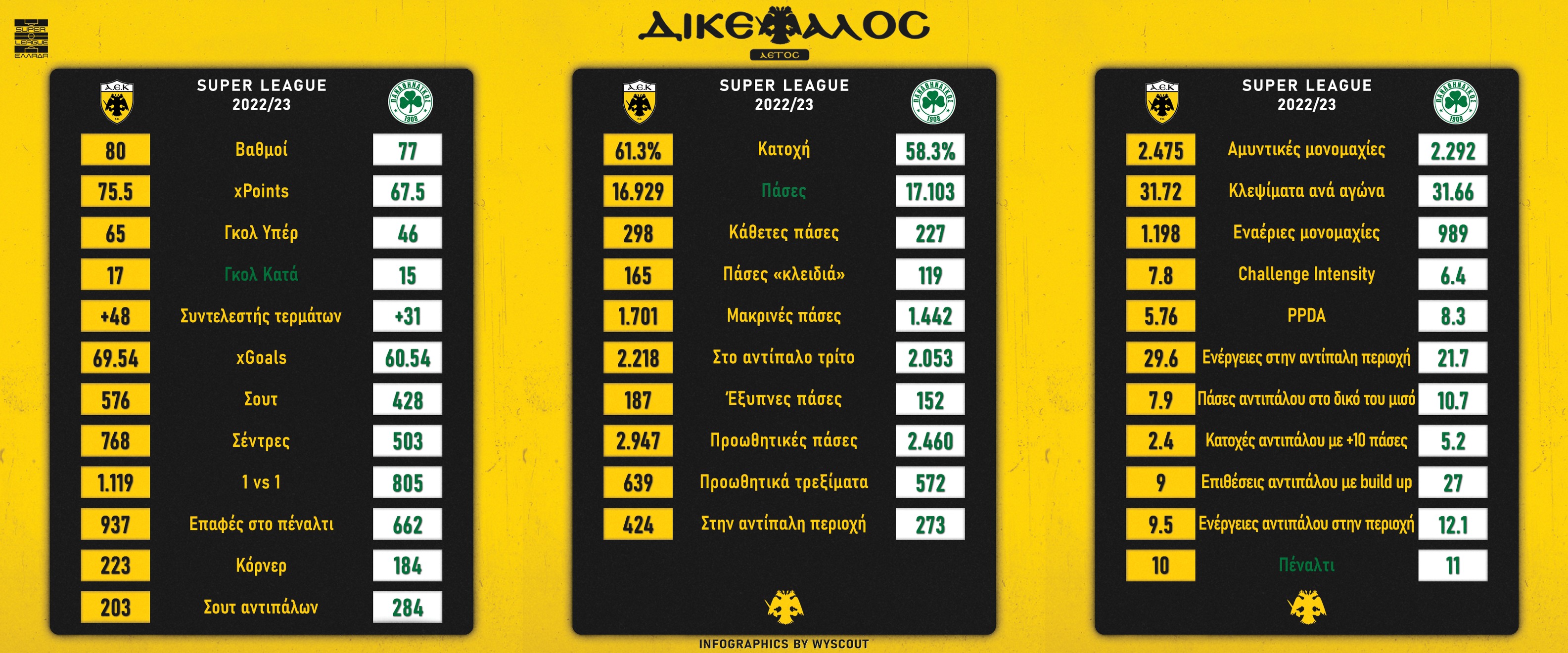 Στατιστική σύγκριση Α.Ε.Κ. - Π.Α.Ο.