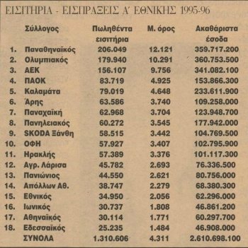 - Το 1995-1996 που η ομάδα μας κατέκτησε το Κύπελλο ο μέσος όρος τιμής εισιτηρίου ήταν στα 6,41 Ευρώ (βλέπε εδώ).