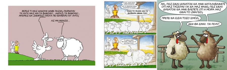 Φέτος επιλέξαμε να σας ευχηθούμε με τρία σκίτσα του «Αρκά», τα οποία εκτός του κολάζ δημοσιεύουμε και χωριστά (βλέπε εδώ, εδώ & εδώ).