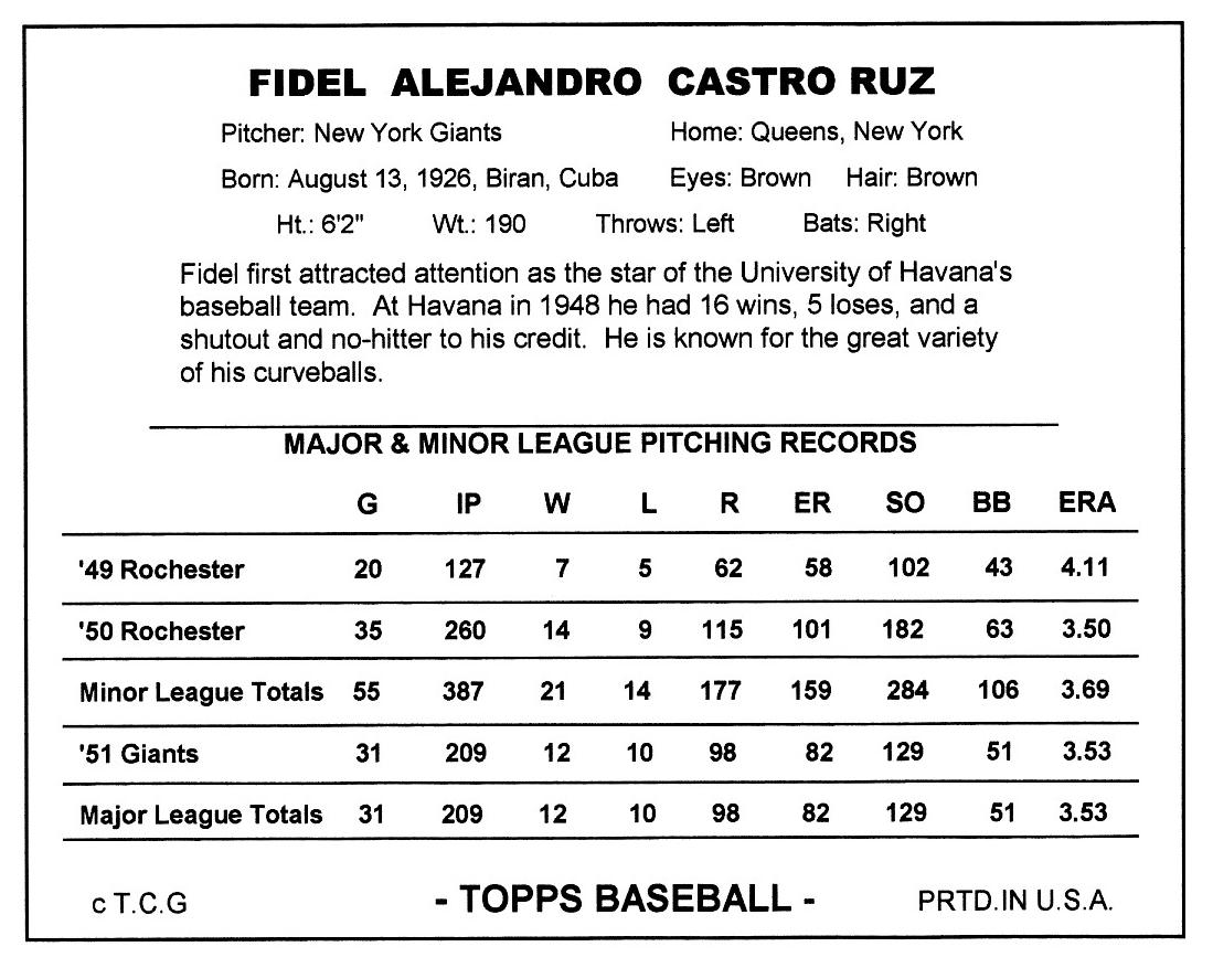 - Ο Φιντέλ Κάστρο είχε υπογράψει επαγγελματικό συμβόλαιο για να παίζει μπέιζμπολ στις Η.Π.Α.; Θα υπέγραφε ο υπεύθυνος τών NewYorkGiants που τον απέρριψε επαγγελματικό συμβόλαιο αν γνώριζε σε τι θα εξελισσόταν μετά ο Φιντέλ;