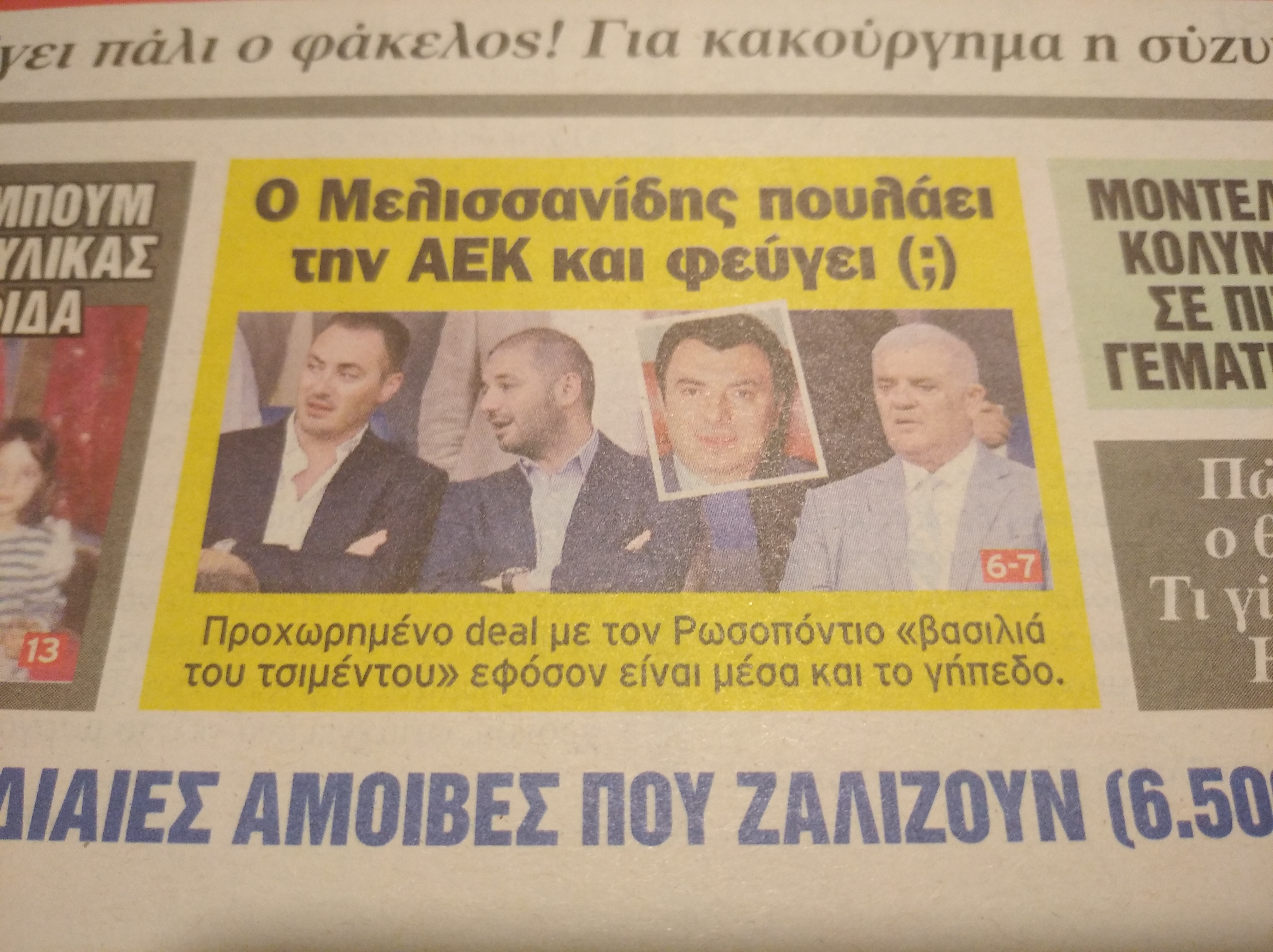 • Η φυγή Μελισσανίδη από την Α.Ε.Κ. είναι περισσότερο επιθυμία του παρά φήμη που διαρρέεται για «να σφίξουν τα γάλατα» (αν και είναι χρήσιμη και γι’ αυτό).