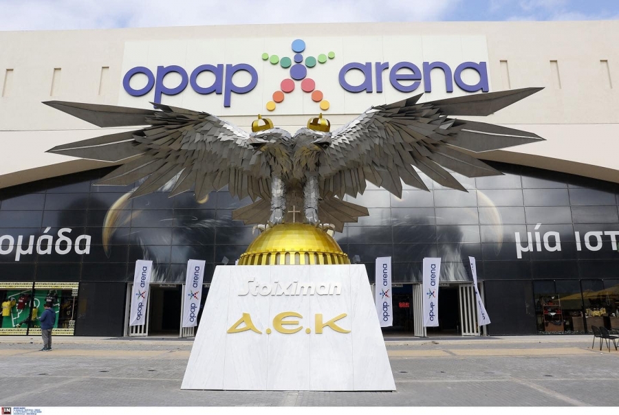 Η φωτογραφία αφορά την ολοκλήρωση του δικέφαλου αετού έξω από το νέο μας γήπεδο και την επιλέξαμε για να συνοδεύει το κείμενο μας. Αυτό, όμως, που έχει σημασία και το οποίο θέτουμε υπόψη σας έχει να κάνει με την εμπορική εκμετάλλευση του συγκεκριμένου γλυπτού (βλέπε εδώ).