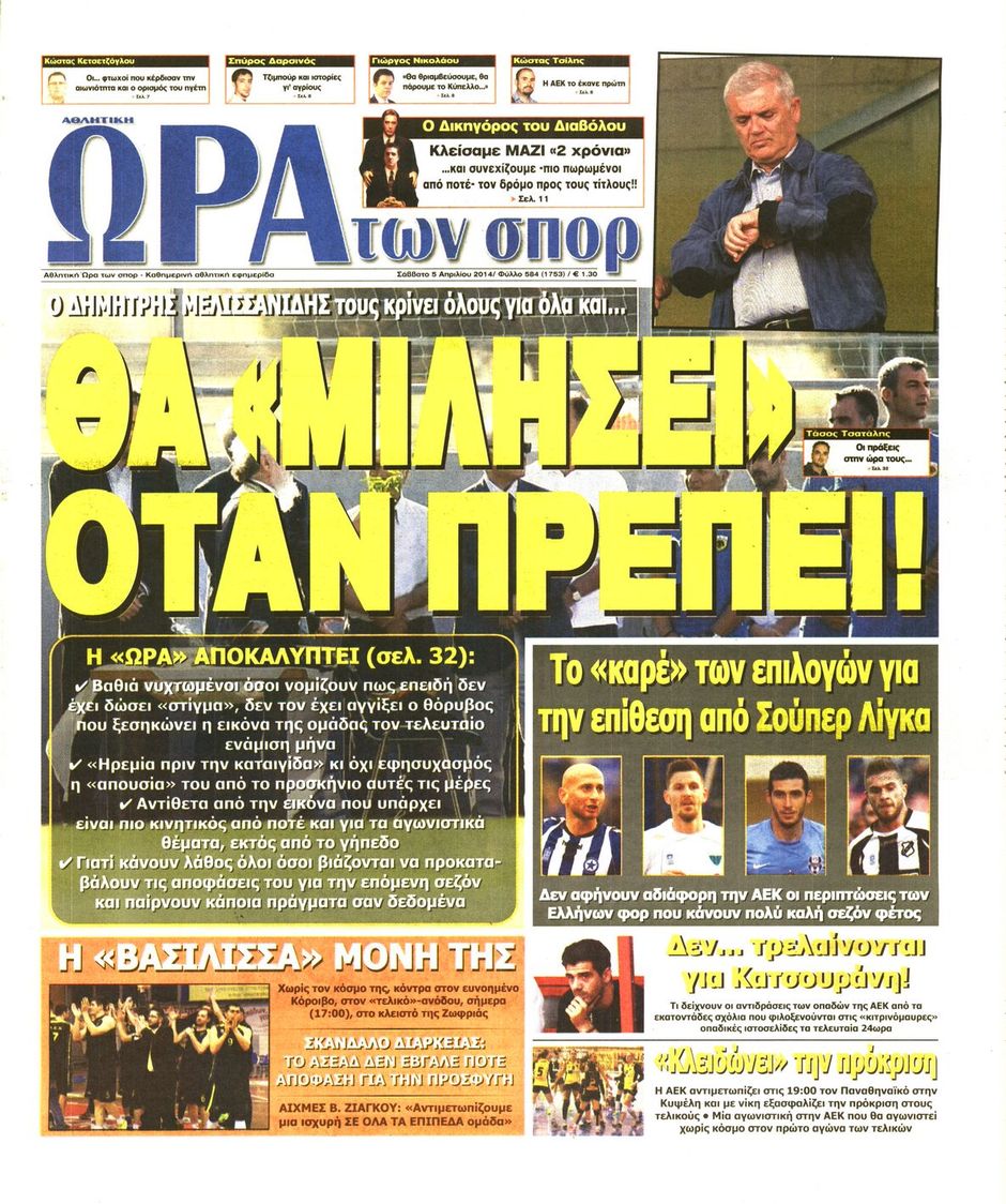 ΘΑ ΜΙΛΗΣΕΙ ΟΤΑΝ ΠΡΕΠΕΙ («ΩΡΑ», ΣΑΒΒΑΤΟ 5 ΑΠΡΙΛΗ 2014).