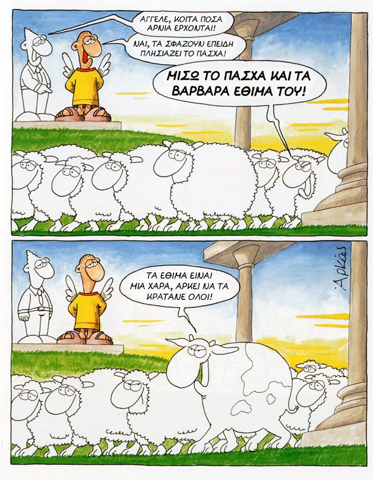 Αντί επιλόγου επιλέξαμε 3 σχετικά με το Πάσχα σκίτσα του Αρκά (βλέπε εδώ, εδώ & εδώ).